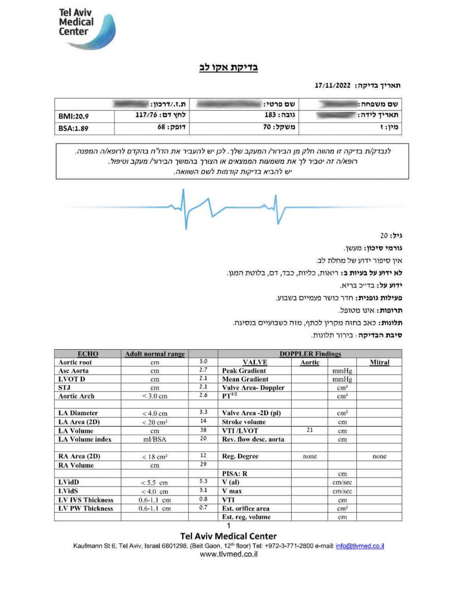 דוגמת פענוח תוצאות בדיקת אקו לב